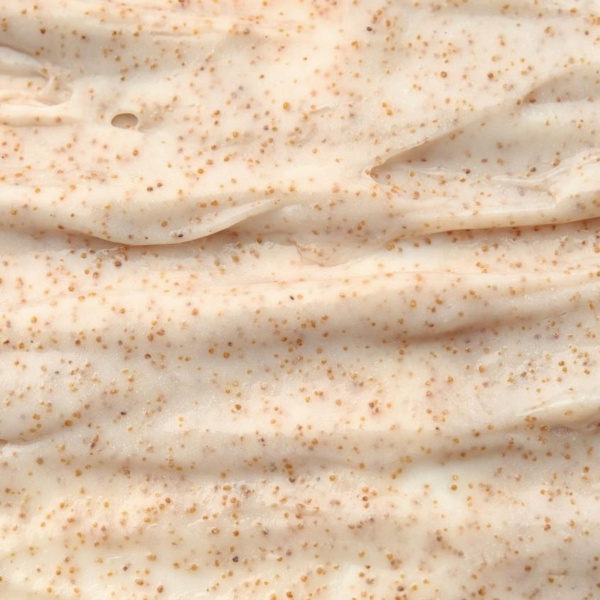 Scoop a small amount and massage onto damp skin in circular motions. As the scrub meets water, it transforms into a creamy lotion-like polish. Rinse clean and pat dry. No greasy residue, just hydrated skin. Perfect for post-workout reset or to get energized in the morning.