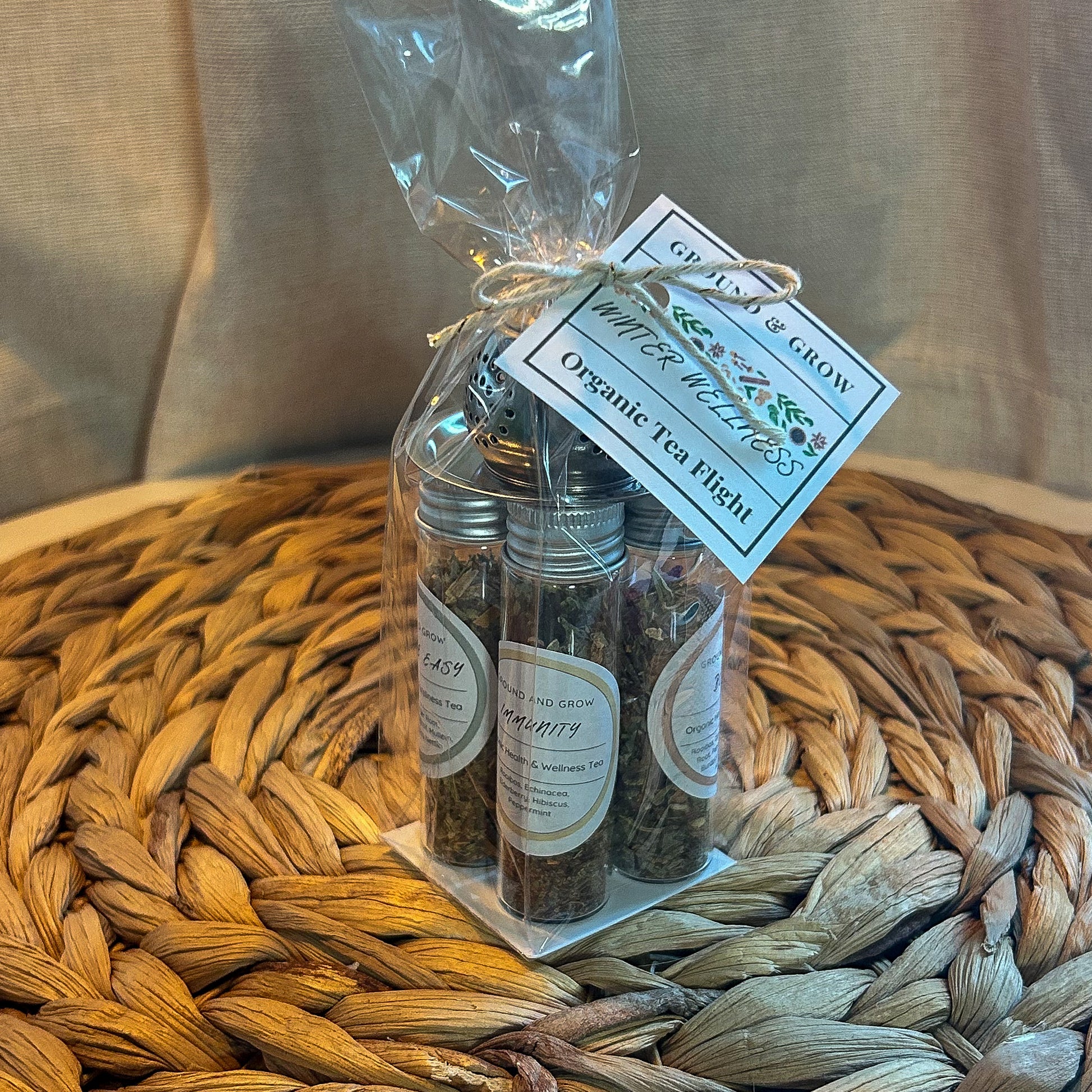 Featuring four blends to support sleep, immunity, beauty, and clear breathing. Beautifully gift-wrapped in four 1-2 serving tubes with a unique single-cup tea infuser.